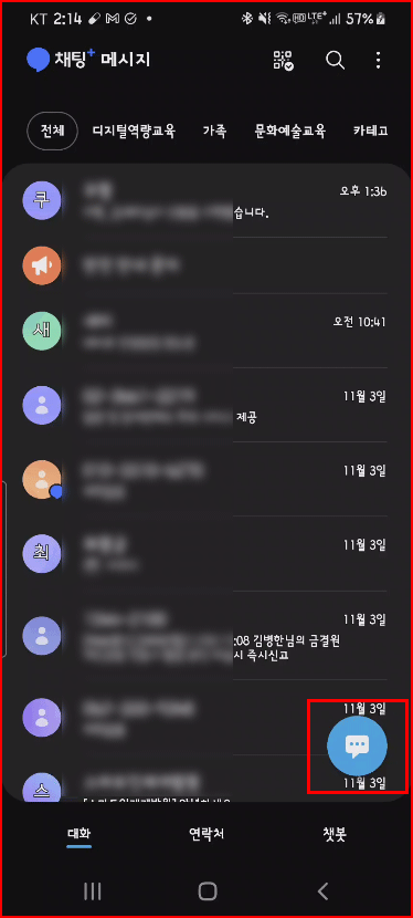 문자를 보낼 때, 대개는 특정인을 선정해서 문자를 적고 종이비행기를 날리지 않습니까? 종이비행기를 날리기 전에 다른 사람을 어떻게 선택할지가 해결책입니다. 다음의 경우는 어떤 친구가 선택된 상태인데 옆에 [+] 표식이 나와 있지요. 그때는 [+]가 그 역할을 합니다.