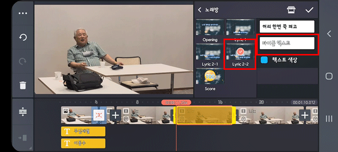 이번 미션은 키네마스터 마지막 미션으로 자유스럽게 표현하는 것입니다. 저는 나훈아의 노래 '무심세월'을 저의 후배이자 친구인 동수샘이 노래 부르는 영상으로 만들고자 합니다. 무심세월의 가사는 노래방 가사처럼 두 줄씩 노래에 맞춰 색이 변경되는 방법까지는 사용하지 않고 한 줄로 생성되는 방법을 사용할 것입니다. 물론 두 줄 가사도 가능합니다. 약간 더 복잡할 뿐이죠. 이 노래방 자막은 텍스트 클립을 사용하는 것은 아니고 "클립그래픽"이라는 키네마스터 에셋에서 제공하는 툴을 이용할 것입니다. 텍스트 클립을 사용하는 대신 메인미디어를 잘라서 거기에 효과를 주는 방법입니다.