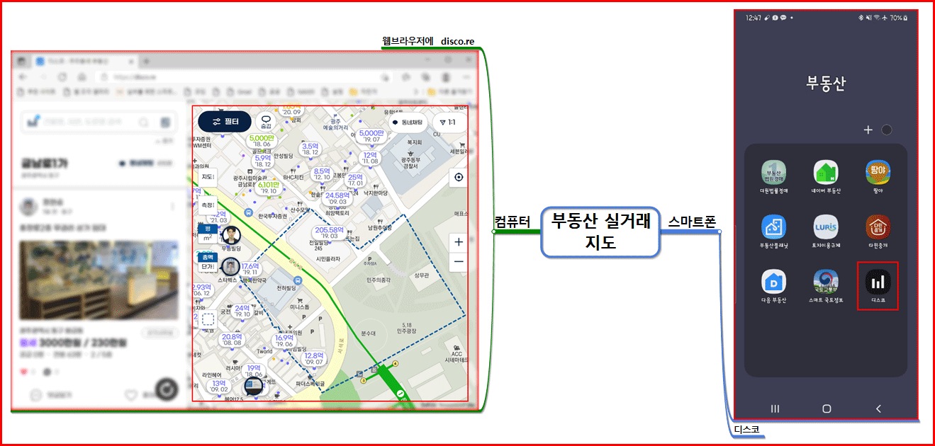 공정한 부동산 거래를 위한 실거래가 공개는 정부의 방침입니다. 부동산 실거래가 공개에 바탕을 둔 어플은 많이 개발되어 있습니다. 그 가운데 하나인 [디스코]를 통해 형님이 궁금해하는 지역의 부동산을 찾아보시게요.
