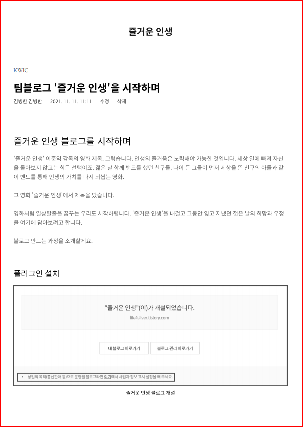 | 티스토리 팀블로그를 시작하며 (0) | 2021.11.11 |