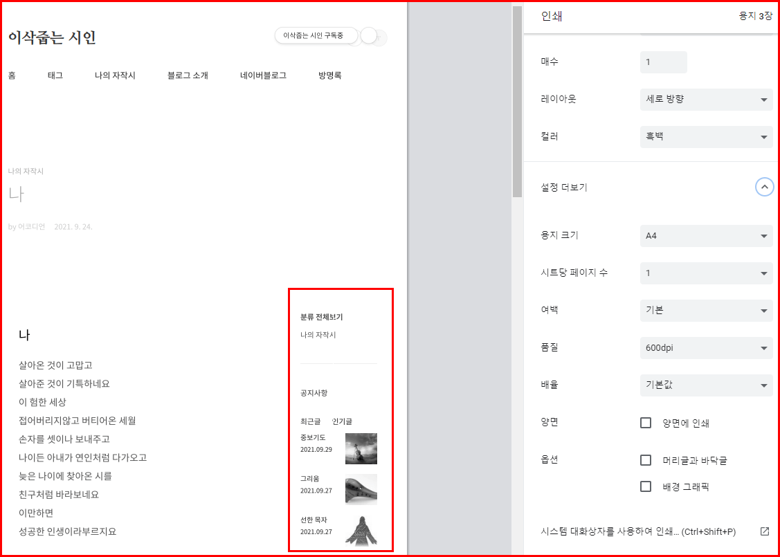 블로그 글 인쇄