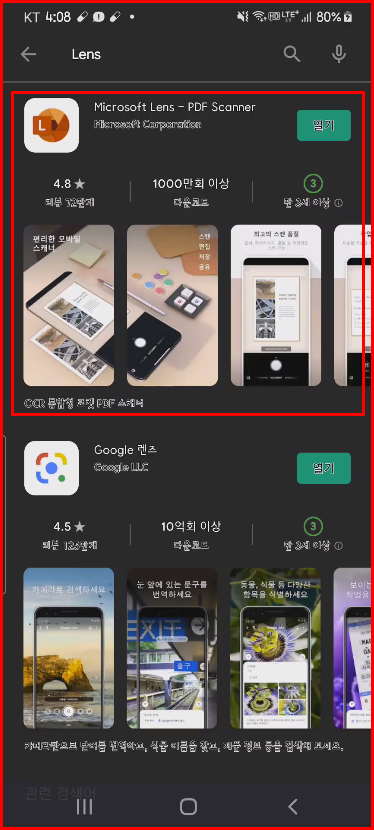 장로님 사무실에 스캐너가 없어서 주민등록증 등 신분증 스캔이 어렵다고 하셨습니다. 다행히 스마트폰에 아주 훌륭한 스캔 어플들이 있습니다. 그중에서 마이크로소프트가 제공하는 [Lens]가 좋더군요. 구글플레이에서 찾아보니 다운로드한 횟수가 천만이 넘네요. 마이크로소프트 명성에 비하면 유저가 많은 편은 아니지만 천만이 넘었다면 검증된 셈이군요.