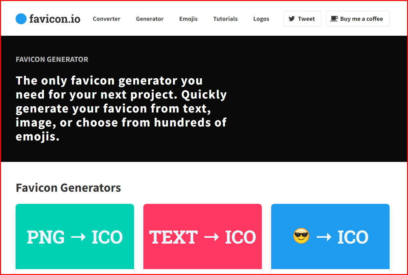 그래 찾아낸 사이트가 [favicon.io] 입니다. 이 사이트에서 이미지, 텍스트 그리고 이모티콘까지 제공한다면서 유일한 파비콘 생성 사이트라고 자랑 치네요.