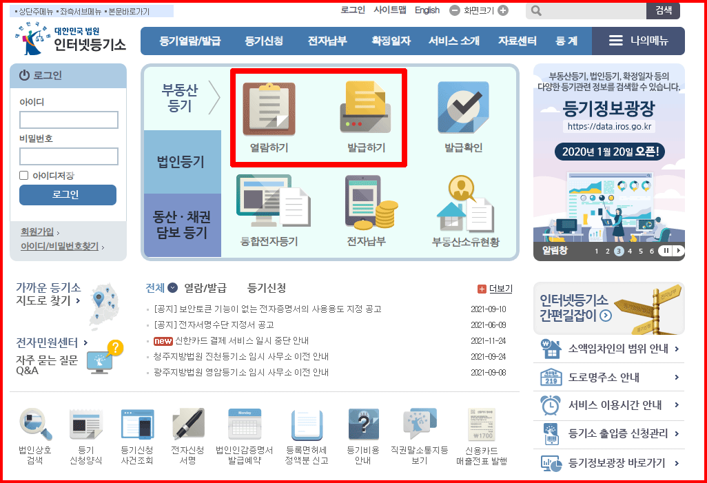 인터넷으로 등기를 발급받을 수 있습니다. 과거에는 상상할 수 없는 일입니다. 대한민국 법원 인터넷등기소가 그곳입니다.