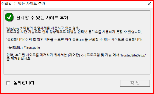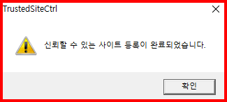 자동 설치에 실패하면 수동으로 프로그램을 설치합니다. [신뢰할 수 있는 사이트] 설치부터 진행합니다. 컴퓨터 환경에 따라 설치 순서나 방법은 다를 수 있습니다.