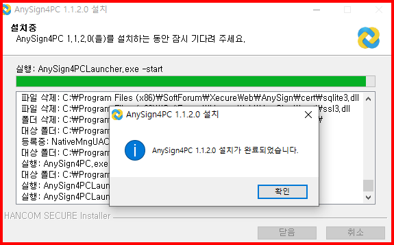 설치가 끝나면 다음과 같은 확인 메시지가 나타납니다.