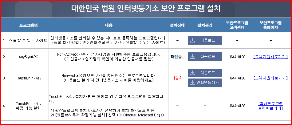 인터넷 등기소를 이용하기 위한 보안 프로그램
