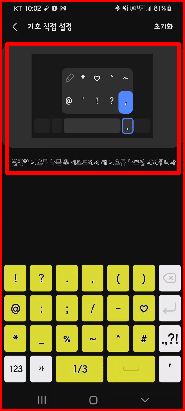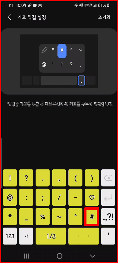 자신이 필요한 기호는 설정에서 등록된 기호를 다른 기호로 대체할 수 있어요. 아래와 같이 [#]에서 [♡]로 등록 기호를 변경하겠습니다.