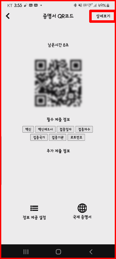상세 정보에는 접종 일자와 접종 기관 등 자세한 내용이 출력됩니다.
