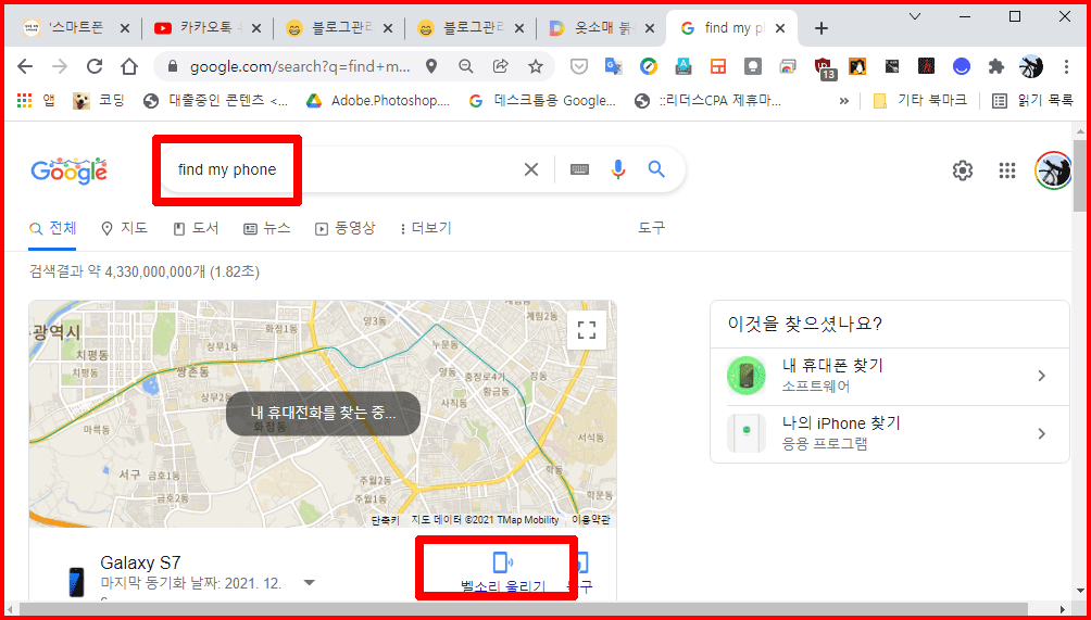 이때 사용할 수 있는 방법입니다. 물론 컴퓨터에서도 가능하고 모바일에서도 가능합니다. 그런데 문제는 스마트폰이 분실됐으니 내 폰을 이용해서 찾는 것은 힘들군요.