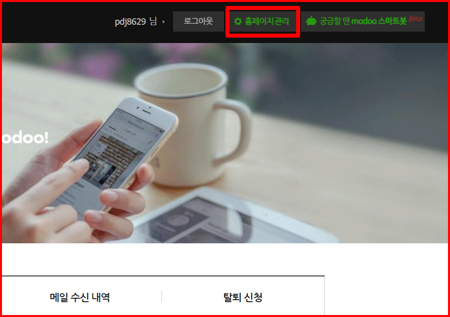 네이버 로그인이 안된 경우에는 네이버 로그인 과정을 거치면서 모두앳 [홈페이지관리]로 들어갈 수 있습니다. 일단은 모두앳도 로그인된 상태라야 관리가 가능합니다.