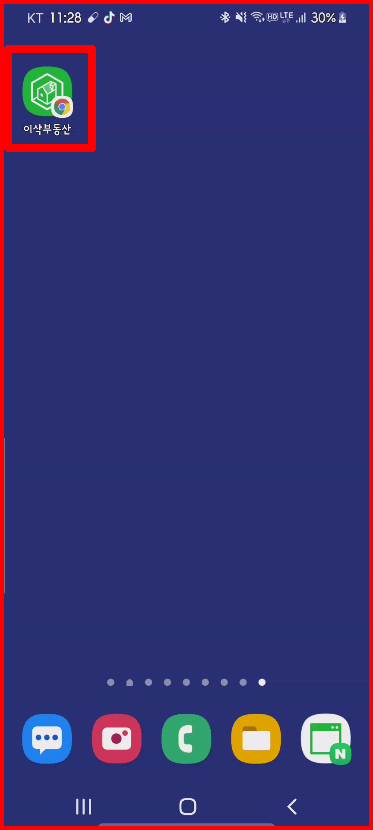 아래 화면은 [추가] 버튼을 선택해서 만든 경우입니다. 홈화면 새 페이지가 생성되고 새 페이지에 [이삭부동산] 모두앳 아이콘이 올라간 것을 볼 수 있습니다.
