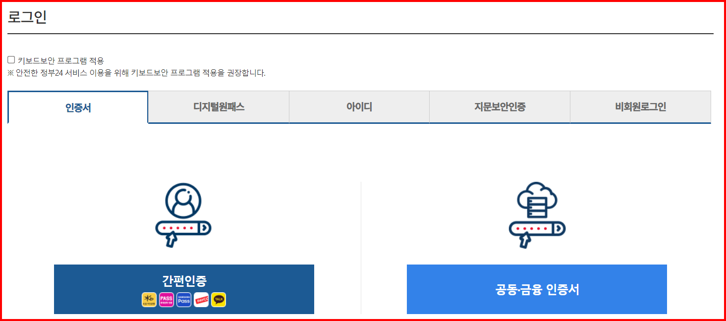 저의 경우는 [공동인증서]를 사용하기 때문에 공동인증서로 [가족관계등록부]를 발급받는 과정을 소개하겠습니다.