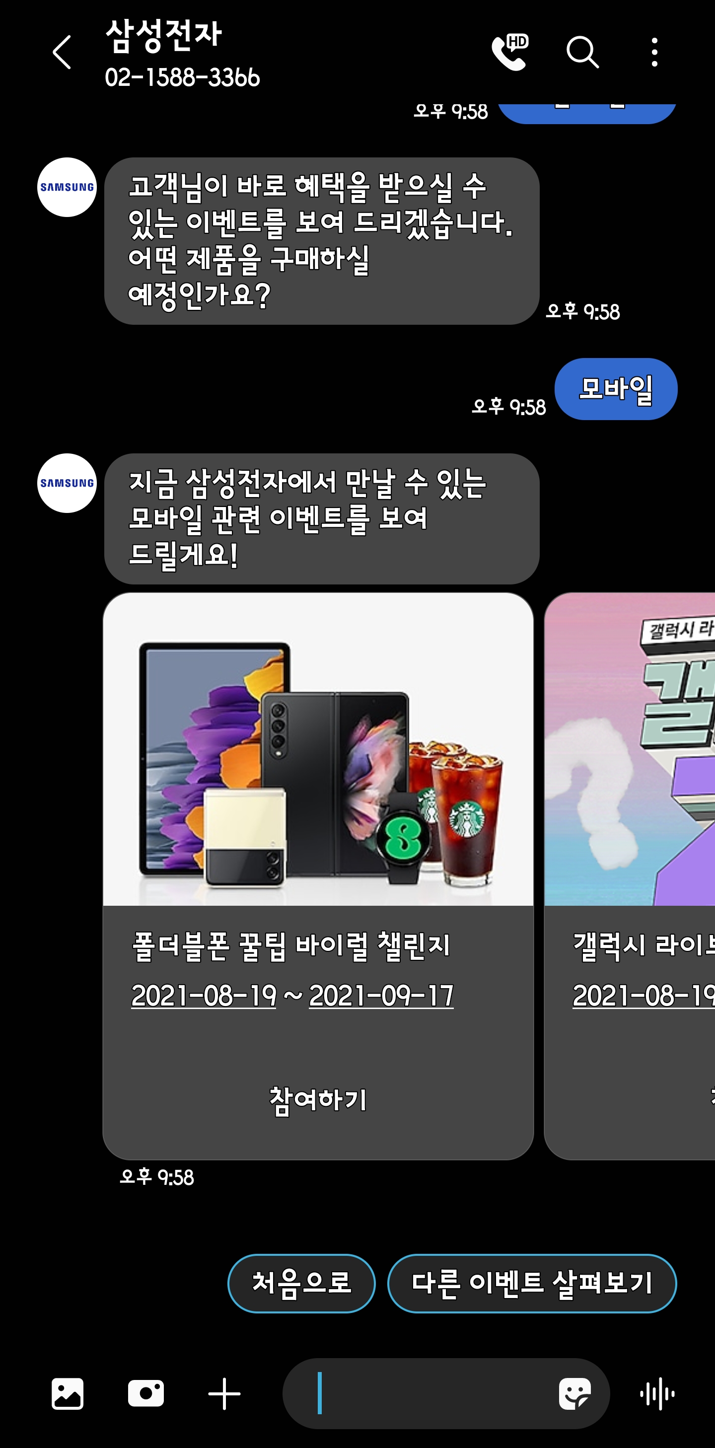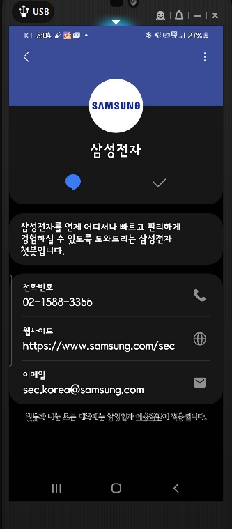 삼성 챗봇을 선택하여 추가했습니다. 폰이 삼성폰이라 상성전자와의 연락이 도움이 되리라 믿어서요.
