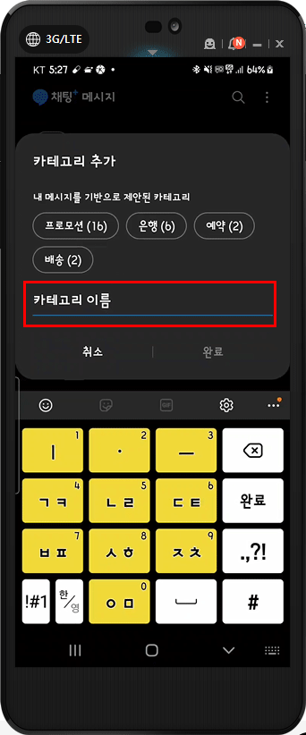 메시지를 카테고리별로 분류해 간편하게 관리할 수 있습니다. 메시지 앱에서 카테고리 추가를 선택합니다. 카테고리에 추가할 메시지를 선택하여 범주별로 메시지를 관리할 수 있습니다.