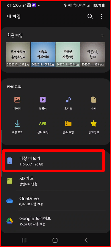 삼성 '내 파일'은 'OneDrive'나 'Google 드라이브' 등 네트워크 저장공간 파일까지 쉽게 관리하는 기능을 갖추고 있습니다.