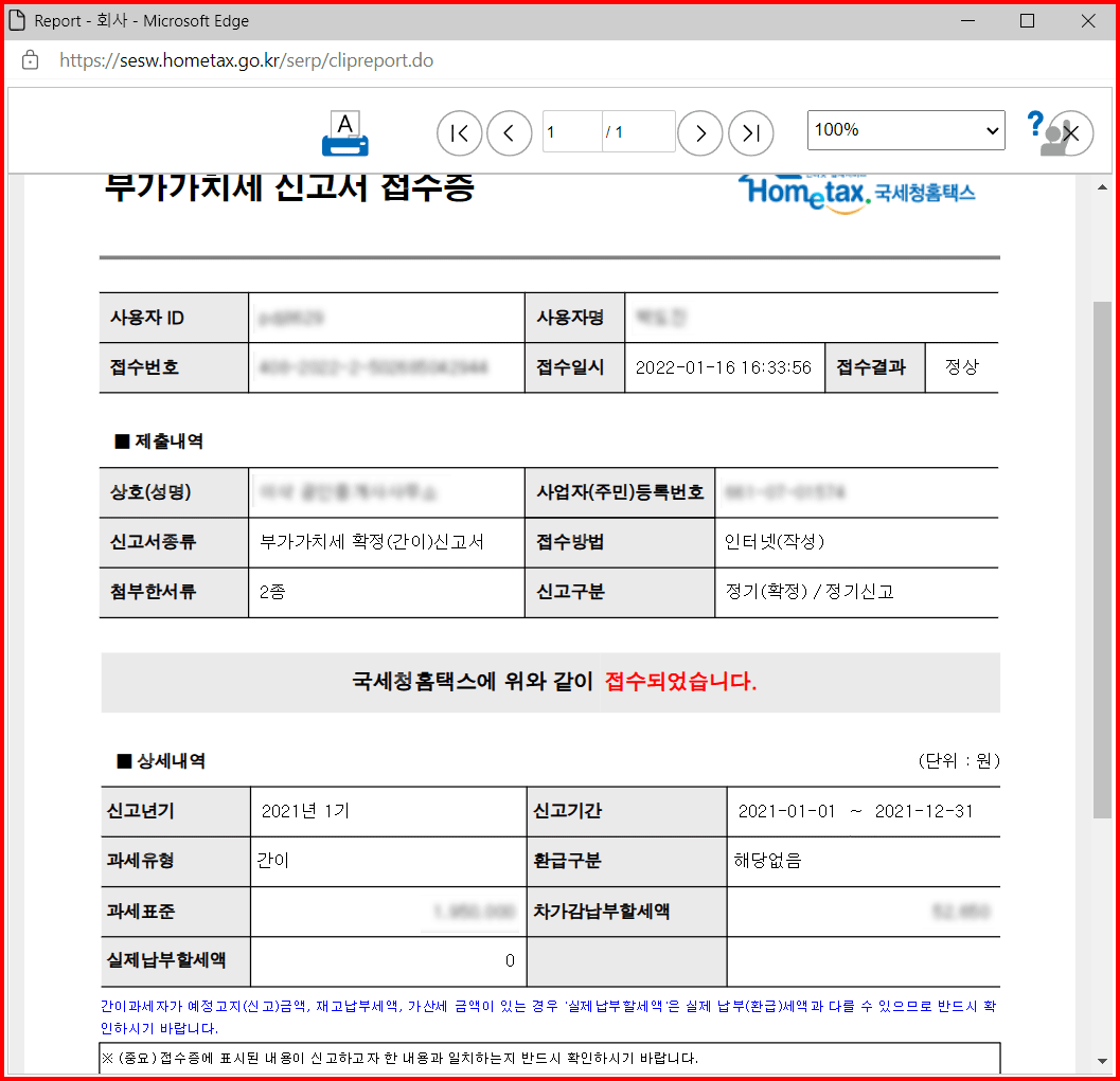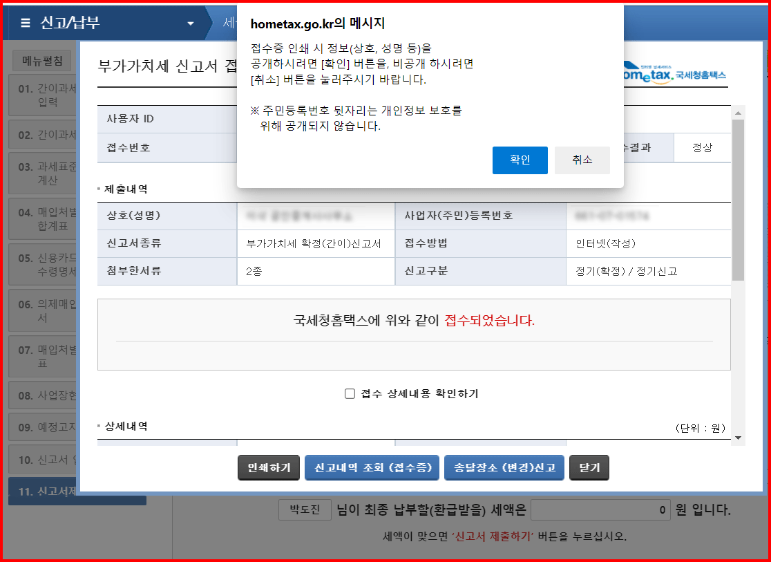 여기까지 홈택스를 통한 간이과세자의 부가가치세 신고 방법을 소개했습니다.