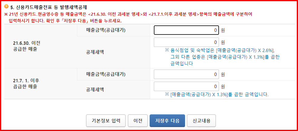조회된 내역에 의한 금액을 해당 칸에 기입합니다. 다음으로 이동합니다.