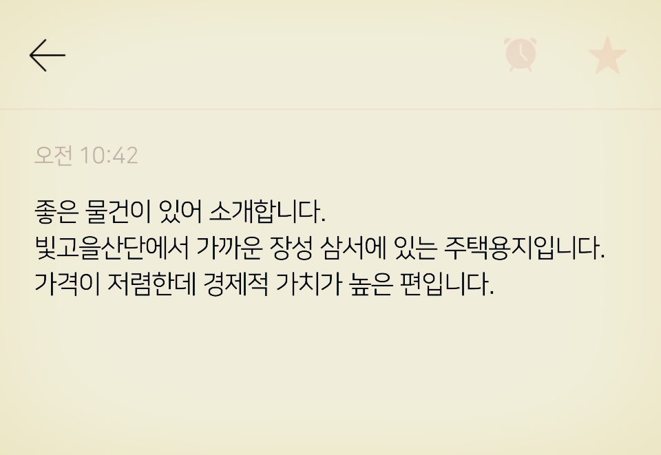스마트폰 '네이버 메모' 앱을 열고 방금 작성한 글을 찾습니다. '좋은 물건이......' 글이 가장 위에 올라와 있네요. 그것을 선택합니다.