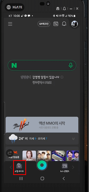 네이버는 우리나라 국민포털서비스로 활용되는 대표적인 사이트입니다. 이곳에서 정보만 검색하는 것이 아니라 쇼핑도 할 수 있습니다. 네이버앱을 열겠습니다.