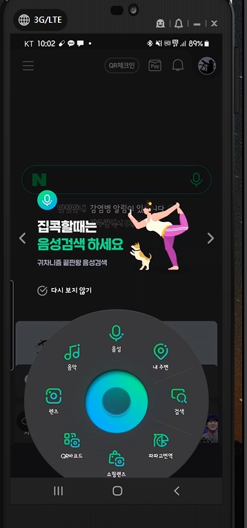 네이버앱 첫 화면에서 검색도 가능합니다. 위에 큰네모에서 찾고자하는 키워드를 입력하여 정보 검색을 할 수 있습니다. 이 검색창에 찾고자 하는 제품을 검색하여 쇼핑을 할 수도 있습니다. 아래 동그라미(그린 닷)를 선택하면 네이버에서 제공하는 특별한 메뉴를 만날 수 있습니다. 네이버 어디를 찾고 있을 때도 이 동그라미를 선택하여 네이버 제공 서비스를 이용할 수 있습니다.