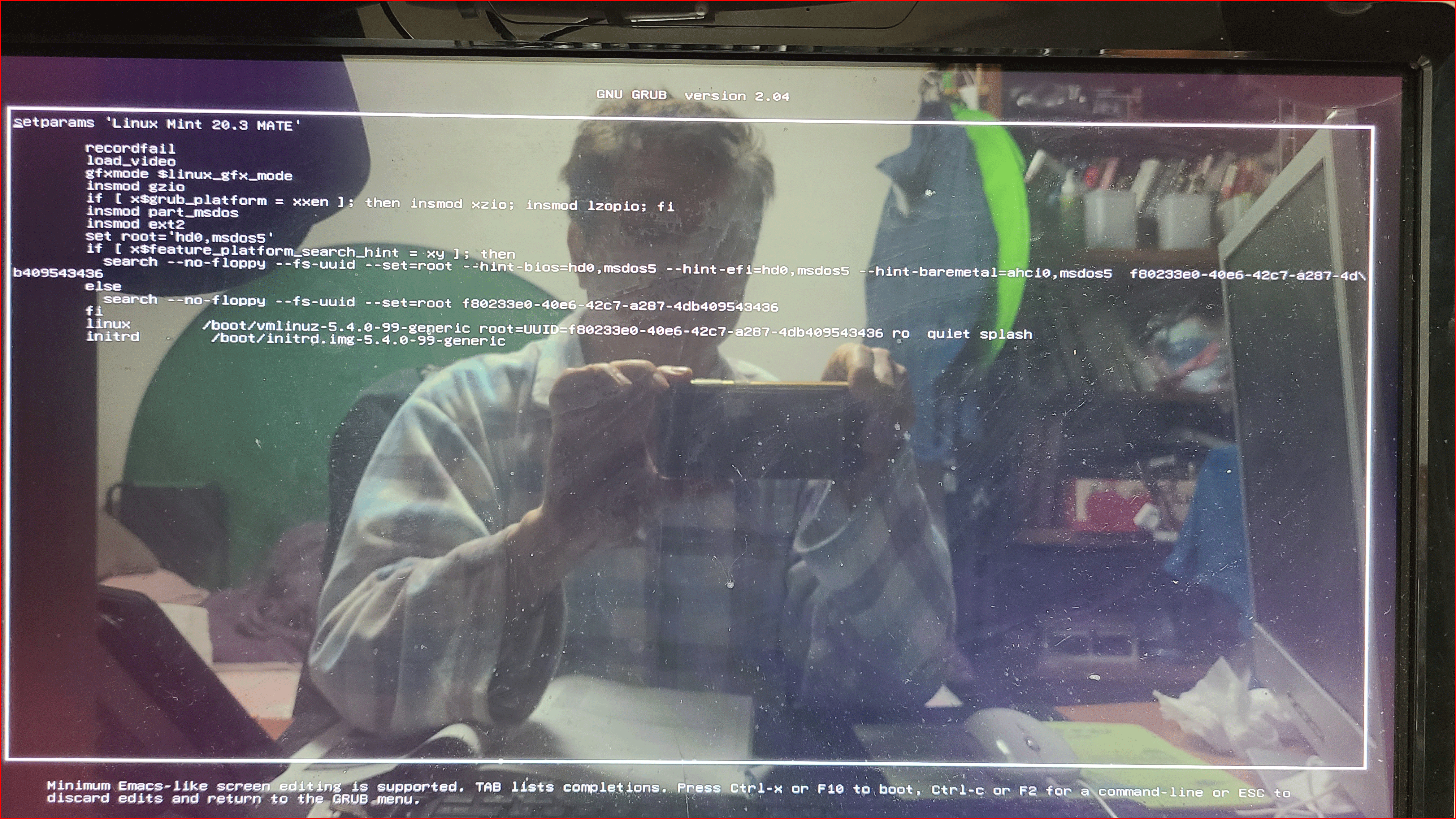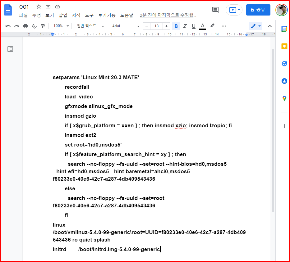여기서는 리눅스 부팅 과정에서 GRUB 진행 과정을 스마트폰으로 찍었습니다. 사실은 GRUB 스크립트가 궁금했거든요.