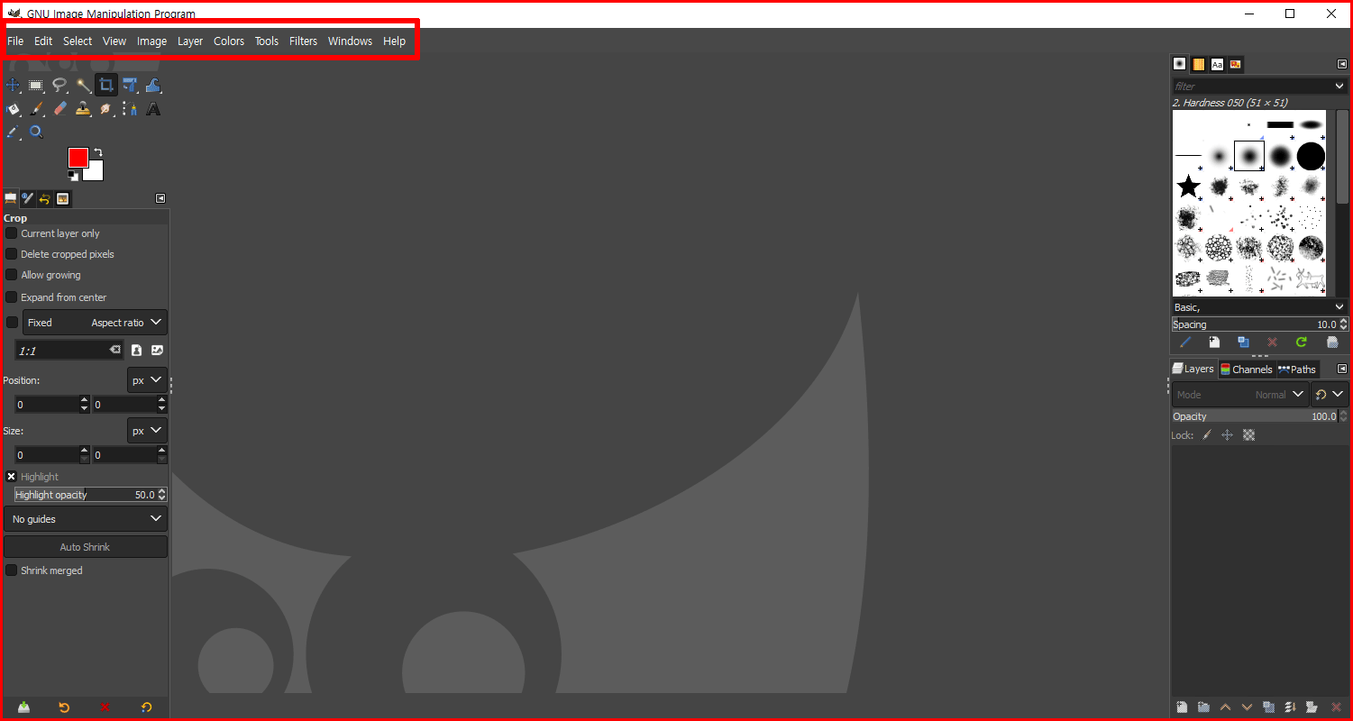 김프는 여러 나라 언어로 메뉴를 설정할 수 있습니다. 처음에는 시스템 언어에 맞춰 기본적인 환경이 설정됩니다. 고로 한글 윈도나 리눅스에서는 한글 메뉴로 설치가 됩니다. 그래픽 편집에서는 한글 메뉴보다 영어가 더 익숙할 수도 있습니다. 메뉴명을 영어로 바꾸는 것을 이 시간에 알아보도록 하겠습니다. 영문 메뉴 전환 전에 기본 사용 환경부터 알아 보겠습니다.