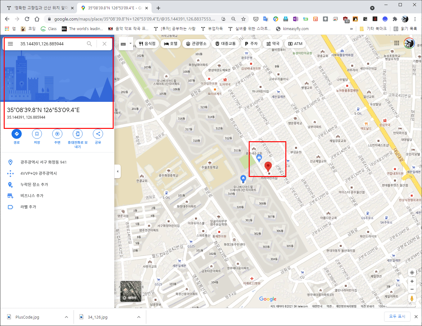 구글에서 좌표값으로 검색한 결과는 아래와 같습니다. 검색 좌표를 입력할 때 뒷부분이 착오가 있어서 장소가 약간 오차가 발생했습니다. 입력 착오였으니, 위 값을 그대로 입력했으면 그 위치가 그대로 찾아졌을 것입니다.