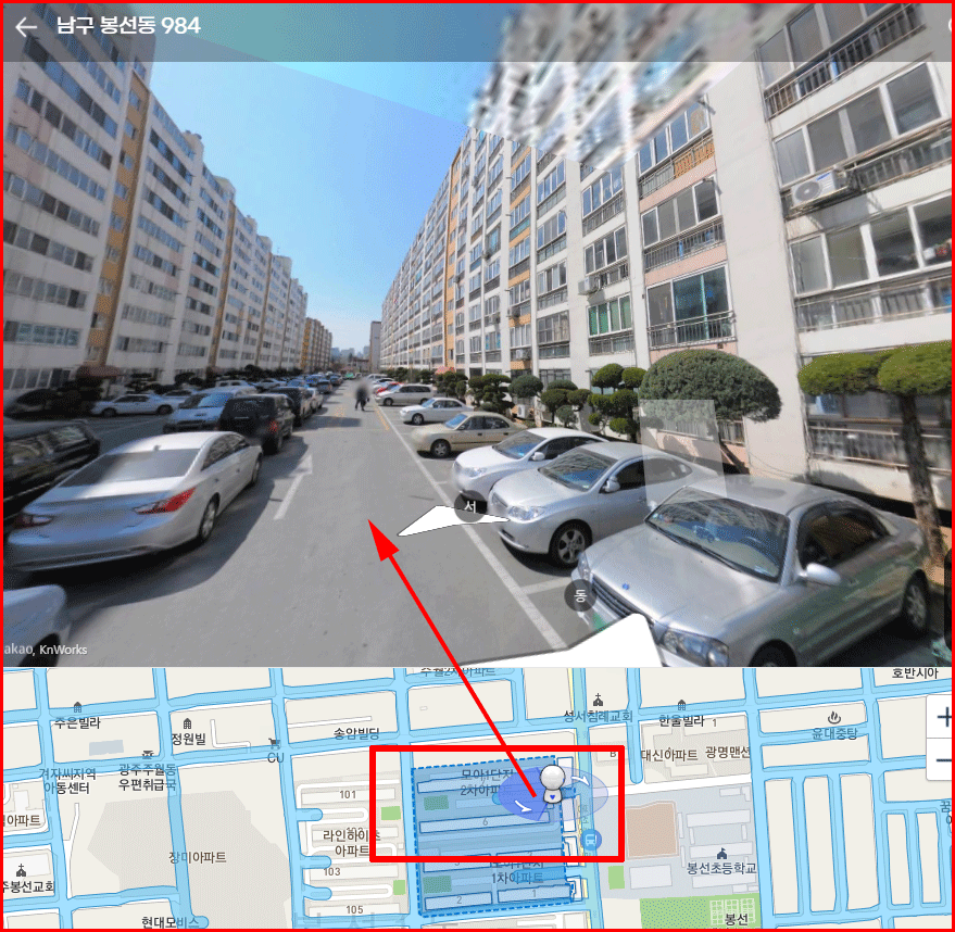 검색된 아파트의 실제 모습도 거리뷰 형태로 볼 수 있습니다. 이 아파트는 1987년 건축된 아파트로 층고는 9층입니다. 처분 아파트는 8층에 있습니다.