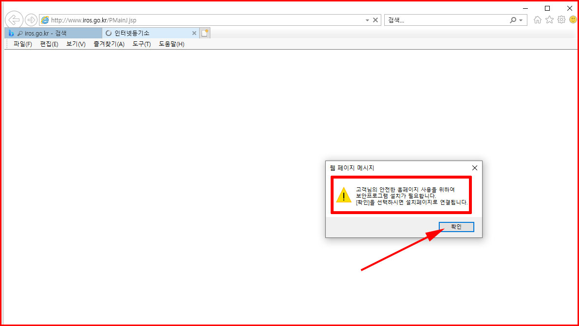 많이 사용되는 크롬이나 엣지에서는 안됩니다. 오로지 '인터넷 익스플로러'에서만 가능합니다.