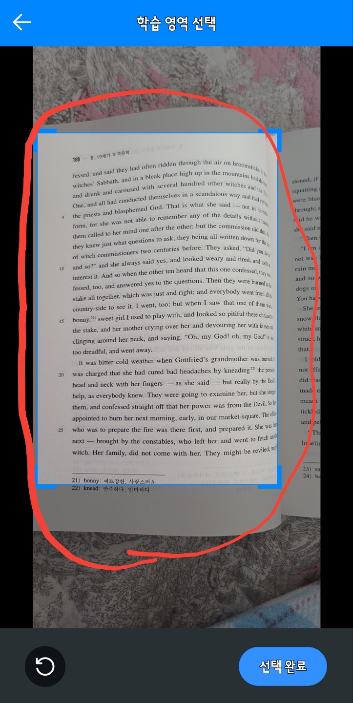학습 영역을 선택하라네요. 사방 파란색 조절점을 통해 적절하게 맞춰줍니다.