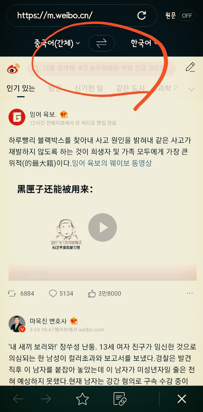 중국도 우리와는 밀접한 관계가 있습니다. 무역거래가 많을 뿐만 아니라 일상도 많이 공유되는 현실입니다. 아래 사이트는 중국의 인터넷 포털사이트 '웨이보'입니다.