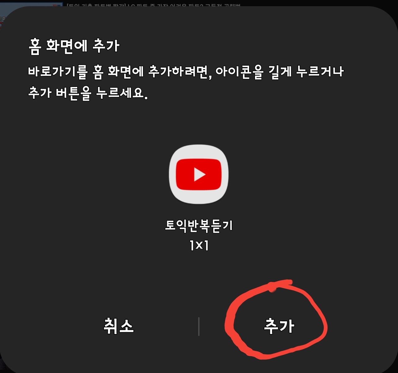 박장로님이 묻는다. 토익 공부를 하는데 유튜브 반복 재생을 홈 화면에 추가할 수 없겠냐고.