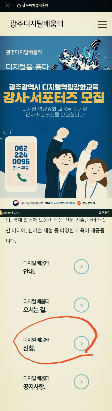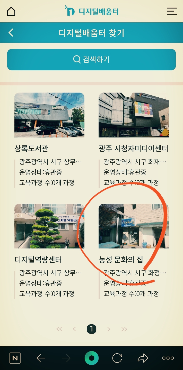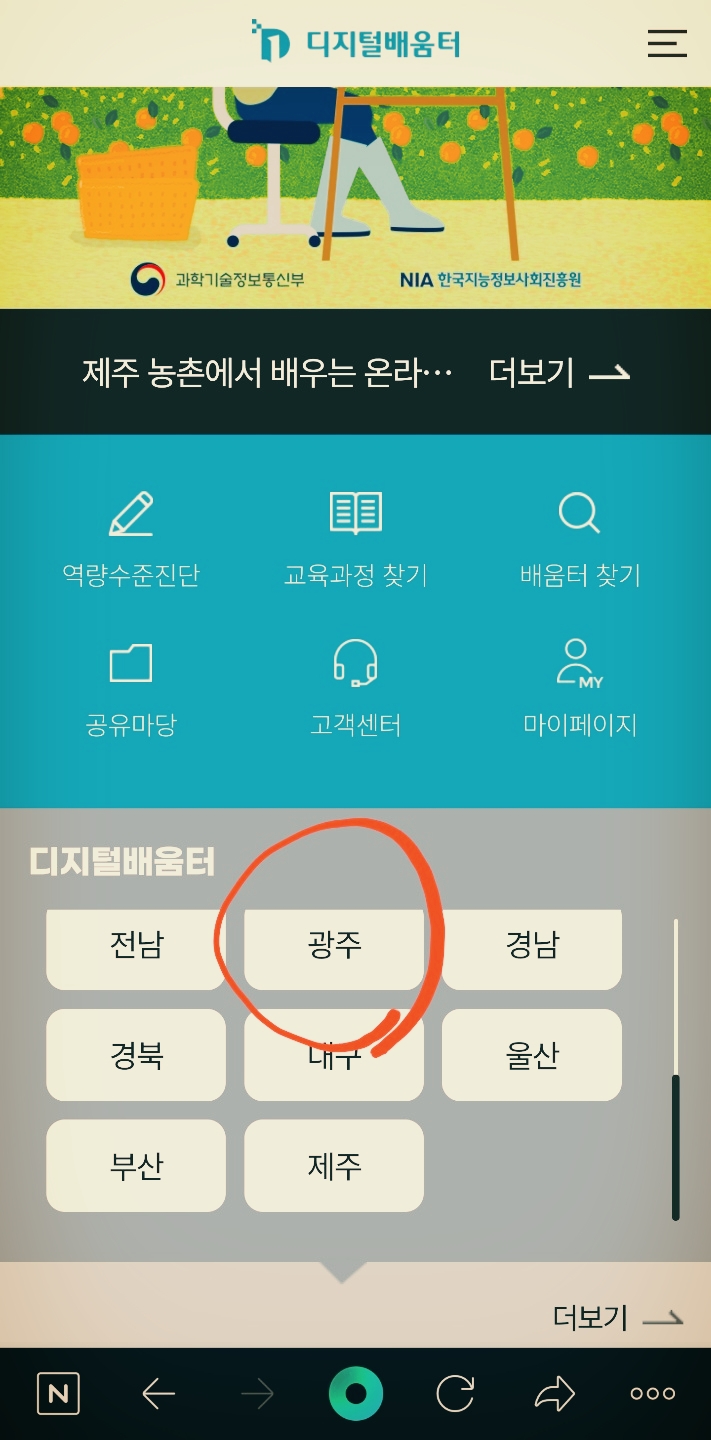 디지털배움터를 찾습니다. 지역이 정해졌다면 지역명을 추가해서 찾는 것이 좋습니다. 광주 지역이라면 '광주디지털배움터'로 검색하면 훨씬 용이합니다.