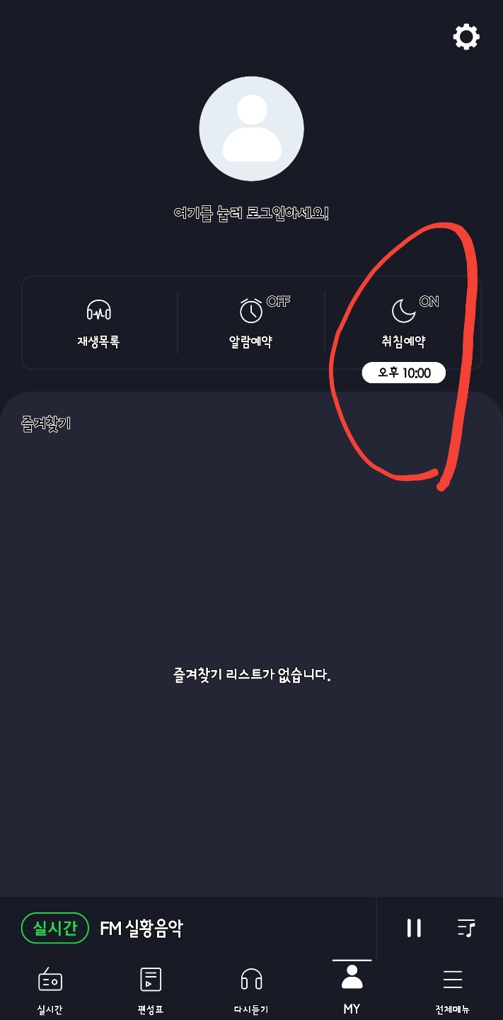 취침 시간을 설정합니다. 아래 경우는 오후 10시로 맞춘 경우. 그 시간이 되면 자동으로 음악을 정지시킵니다.