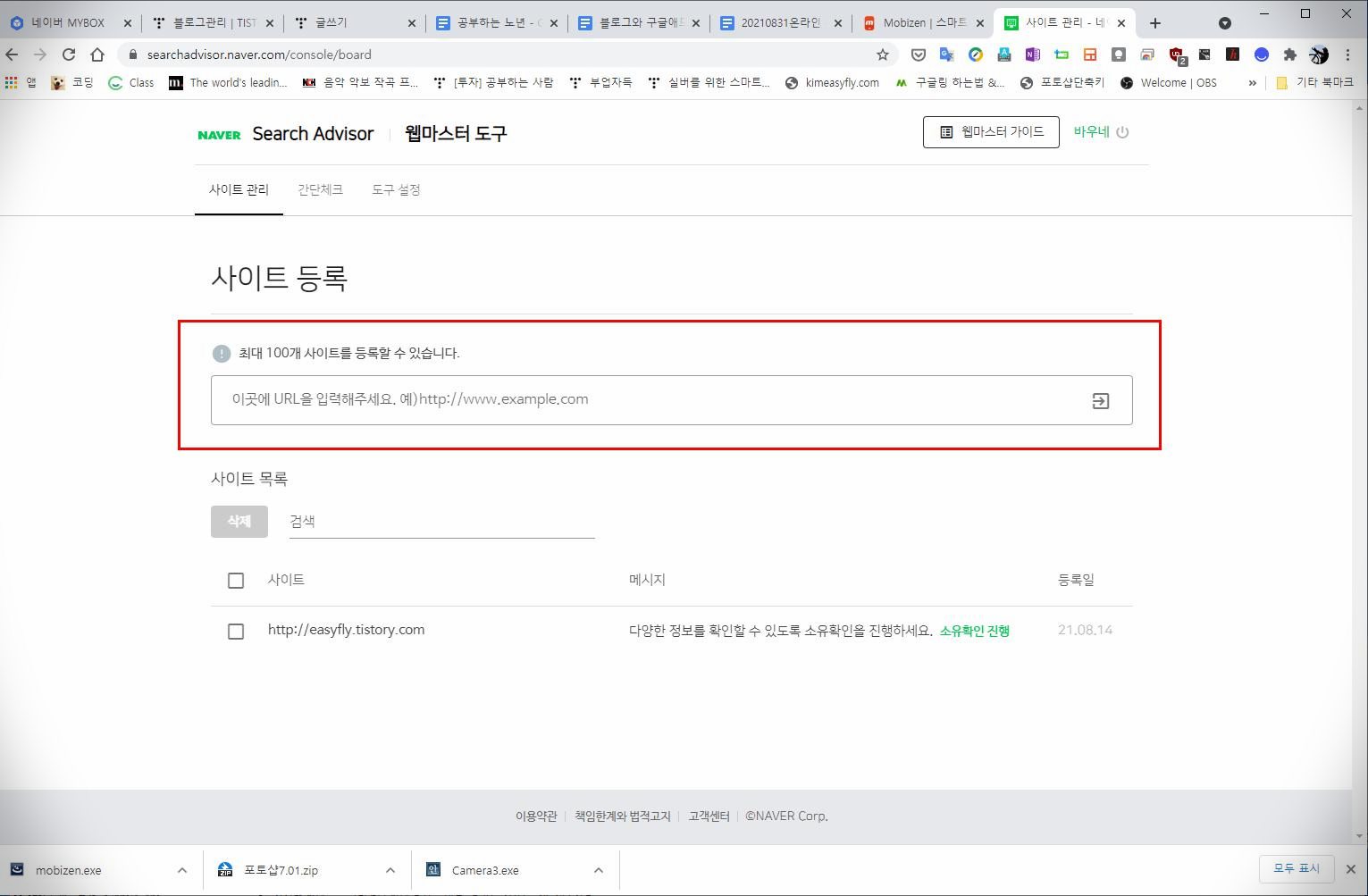 등록은 호스트 단위로 등록하도록 되어 있습니다. 내 경우는 [easyfly.tistory.com]으로 등록 신청을 했습니다. 등록을 하면 사이트소유확인 절차를 거칩니다.