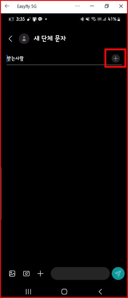 메시지를 받는 사람을 추가할 때, 한 사람씩 추가할 수도 있지만 그룹을 선택할 수도 있습니다. 아래와 같이 사람이 겹으로 줄 서있는 아이콘이 '그룹' 아이콘입니다. 이 '그룹'을 선택하면 등록된 그룹이 보입니다.