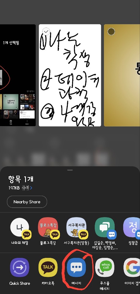 위 작성된 진진가 이미지를 메시지를 이용해서 강사에게 보냅니다. 강사 폰 번호는 010-1234-1234입니다. 메모에서 이미지 파일을 저장하는 것은 사알짝 탭하면 저장 아이콘이 나옵니다.