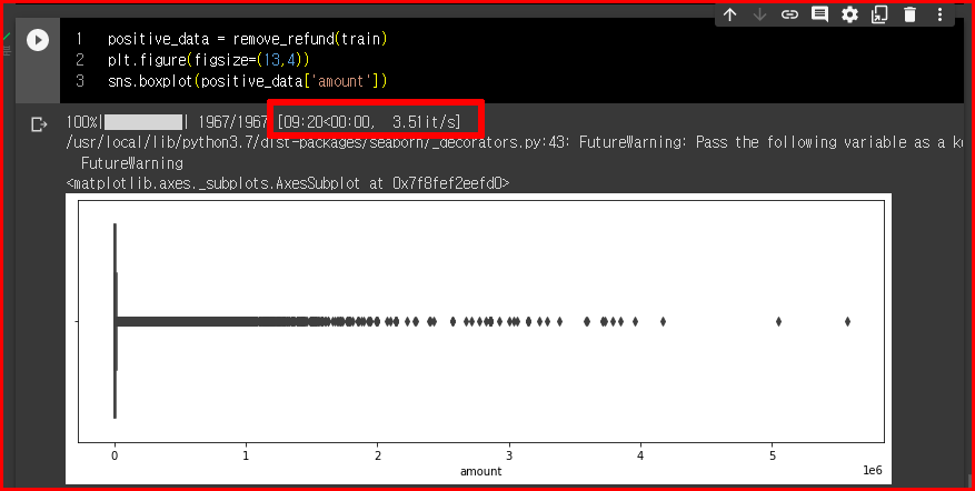 환불 거래 제거 함수를 사용해 노이즈를 제거한 후 상자 그림을 통해 결과를 확인합니다.