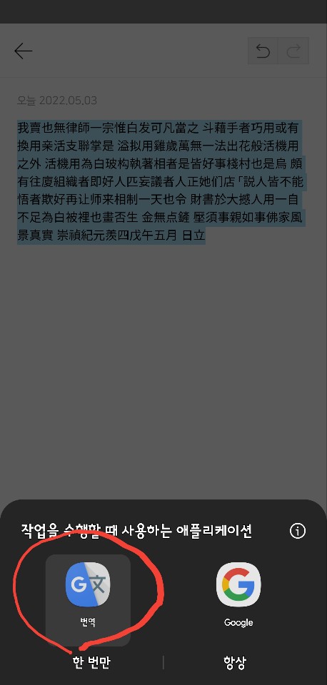 구글렌즈를 이용해 봅니다. 방법은 파파고 이용과 동일합니다. 파파고와 마찬가지로 번역글을 사용할 수준은 아닙니다.