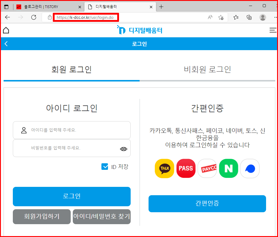 쉽지 않은 일들이었습니다. 시스템이 불안해서 크롬으로 직접 로그인을 시도했습니다. 크롬을 열고 로그인 주소를 바로 입력하는 방법으로.