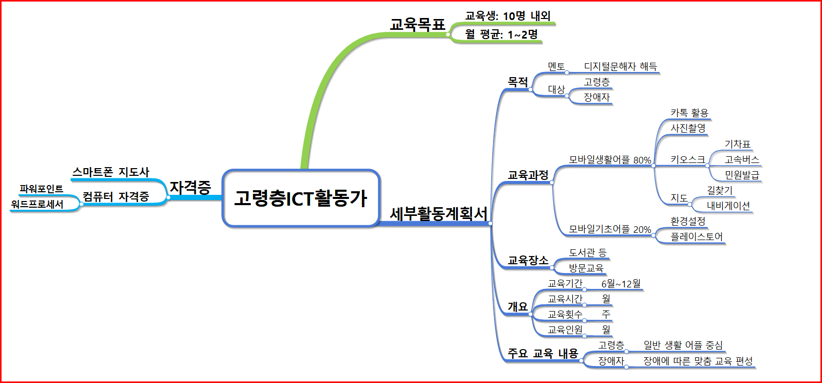 우선 이 분야는 스마트폰을 잘 활용하시는 고령층이 다른 고령층이나 장애가 있는 분들을 대상으로 멘토 역할을 하는 것으로 해석됩니다. 가까이 있는 지인들을 대상으로 스마트폰 사용법을 지도하는 수준을 요구하는 것으로 판단됩니다.