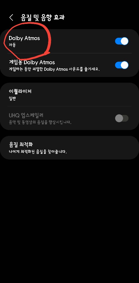 막귀라면 상관없는 설정입니다. 아니, 막귀라면 모두 끄노 사용하면 되겠네요. 막귀가 아니라면 '돌비' 등 필요 설정을 하이면 됩니다. 특히 헤드셋이나 이어폰 쓰시는 분들, 주목!