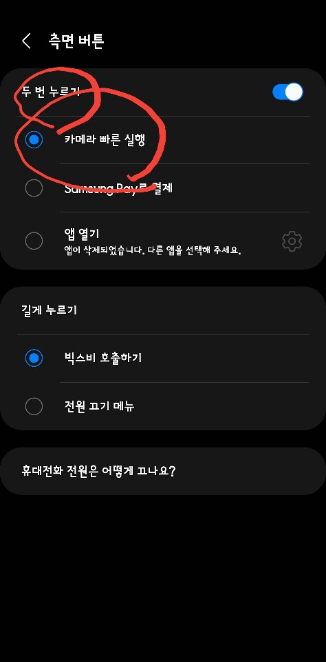 두번 눌러 카메라. '바쁘다 바뻐'할 때, 측면버튼 두 번 따닥. 카메라 실행되면 순간포착 끝.