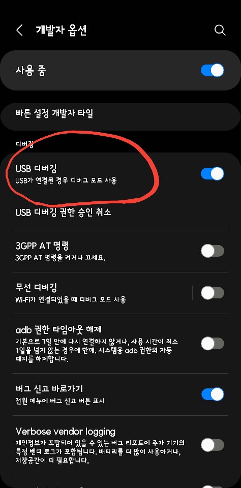 빌드번호 7회 클릭해서 '개발자 옵션'까지 사용이 가능하다면 초보 딱지는 끝.