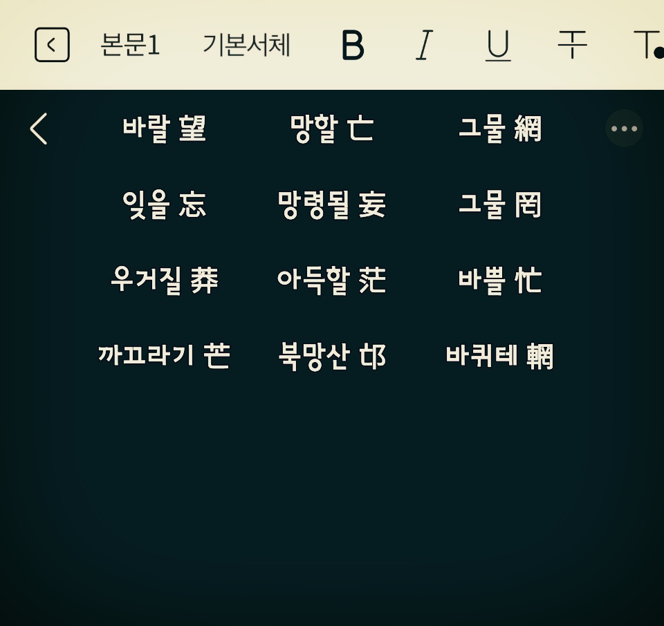 흔한 한자가 아니니, '망'을 스마트폰 키보드에서 찾으니 저 글자는 없네요. 내가 애쓰는 사이 박장로님이 찾아 보여 주십니다.