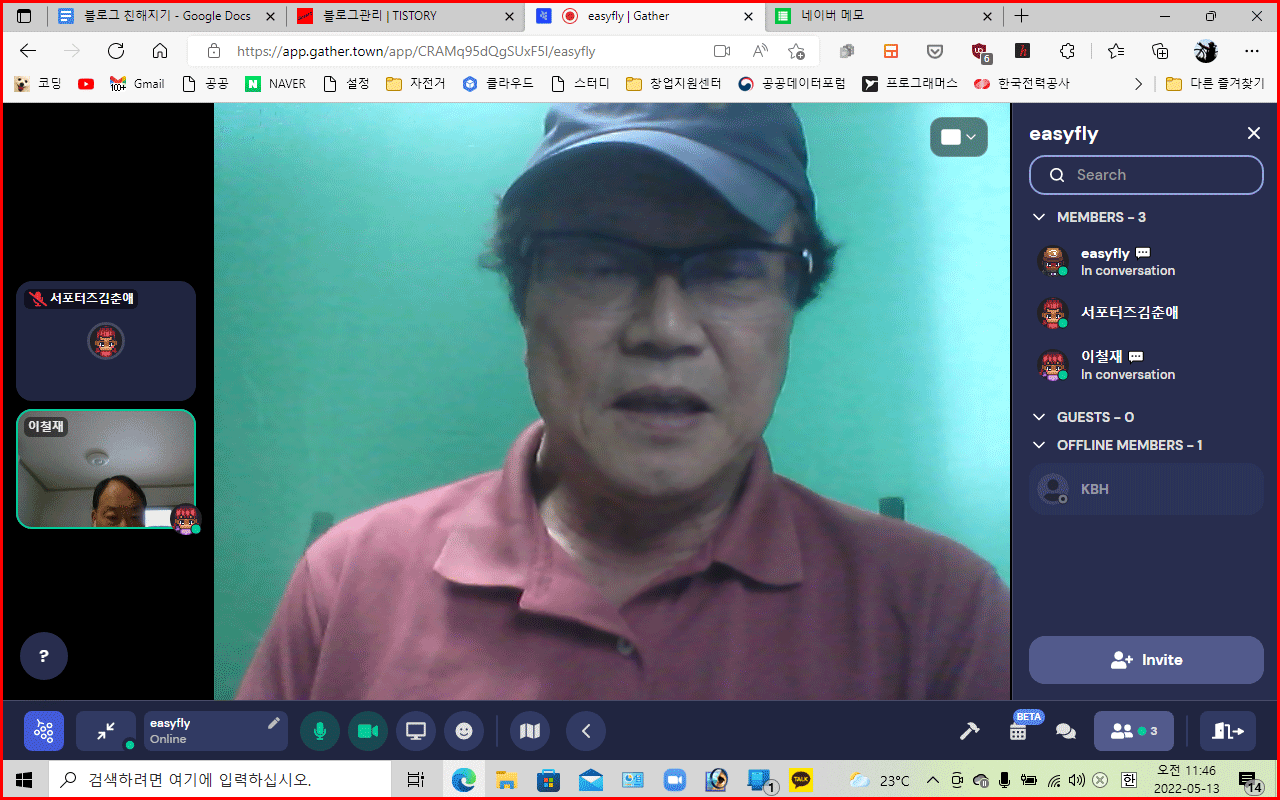 온라인 독립교육과정으로 5월 교육계획 '블로그 친해지기' 3회를 진행했습니다. 5월 한 달은 이 과정을 가지고 매주 금요일 오전 9시부터 12시까지 진행하거든요. 오늘은 2시간은 줌으로 진행하다가 마지막 1시간은 메타버스 '게더타운'으로 진행했습니다. 물론 처음 하는 '게더타운'이라서 강의 스페이스에 들어오는데 시간이 걸렸습니다.