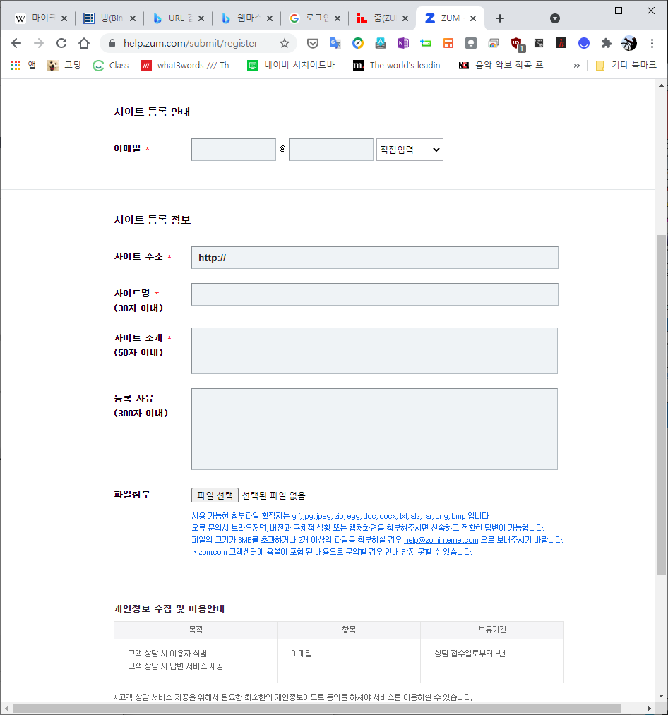 ZUM - 사이트 검색등록