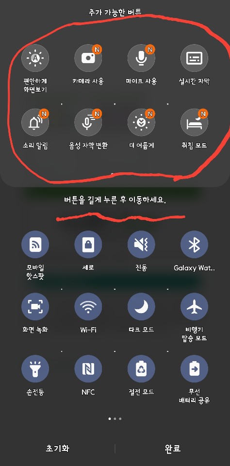 퀵패널에 등록할 아이템이 추가됐군요. 퀵패널이란 폰의 주요 기능을 빠르게 설정하기 위해 등장한 개념입니다. 스마트폰 위에 작은 아이콘을 배치해서 쉽게 폰 환경 설정을 조정할 수 있게한 것입니다.