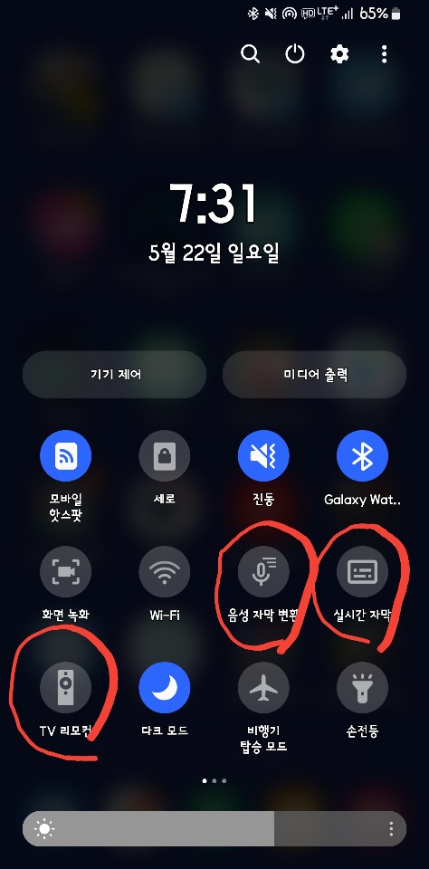 추가할 수 있는 아이템이 많이 늘었어요. 그 중에서 '음성자막변환', '실시간 자막', 'TV리모콘'을 추가했습니다.